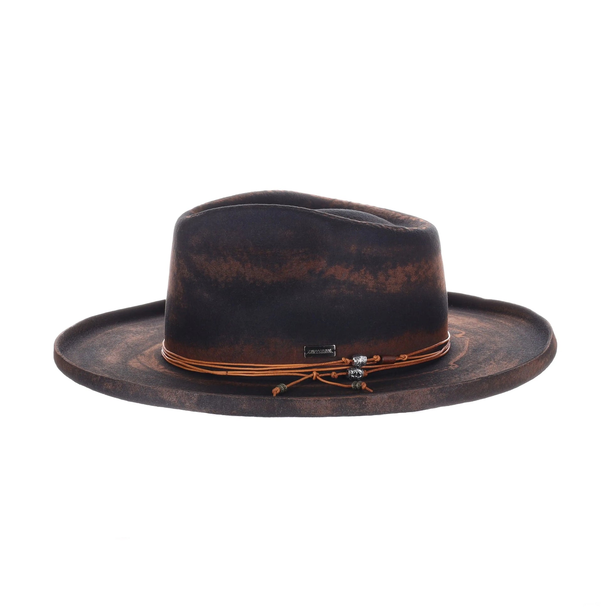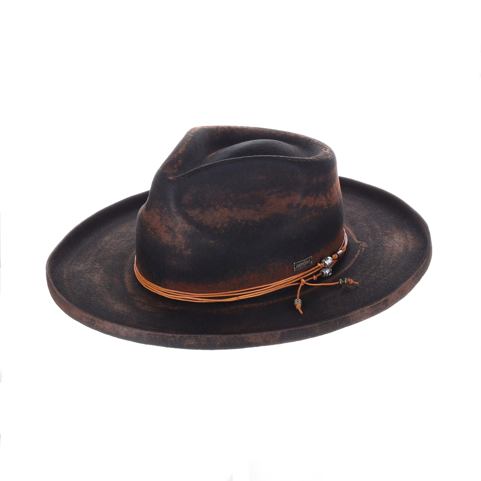 DapperFam Brownstone Distressed Wide Brim Wool Fedora