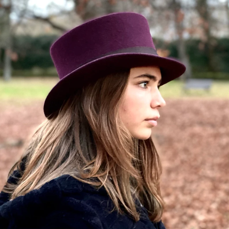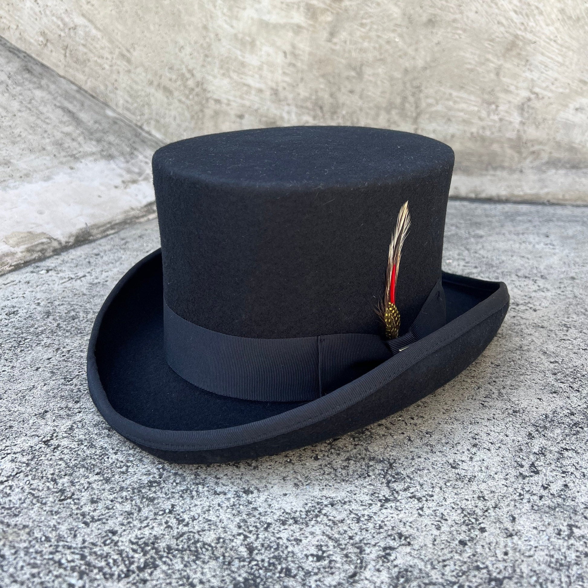 Short crown top hat embellished with a 50 millimeters wide grosgrain ribbon. Edwardian top hat ideal for everyday and special ocasions such as weddings, cocktails or parties. For man and woman.