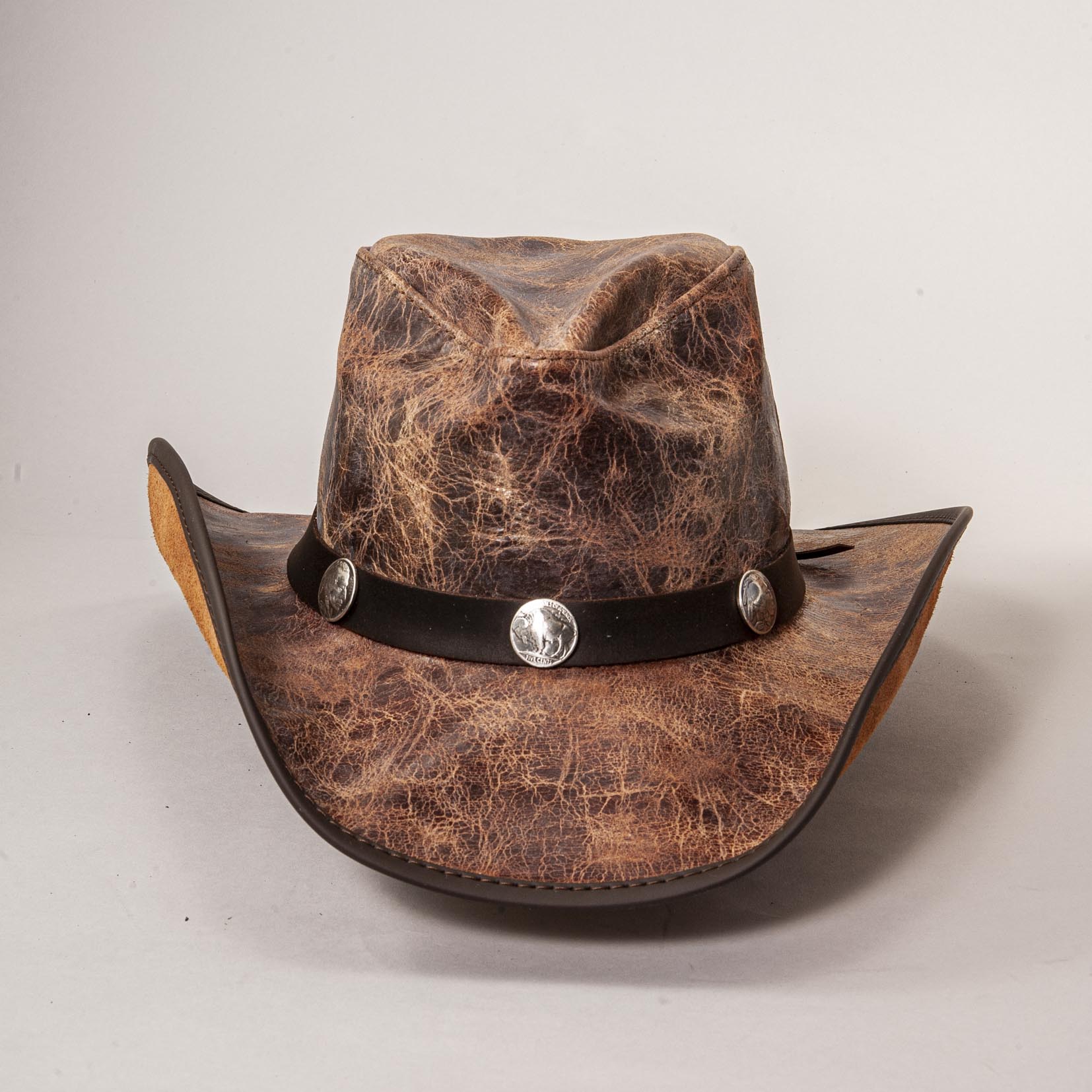 This limited edition cowboy hat is available in a wide array of color options to choose from. All of the options in this listing will be made primarily with finished leather. Sizes and supplies to make more are limited, and once they're gone they're gone! Don't miss out!
